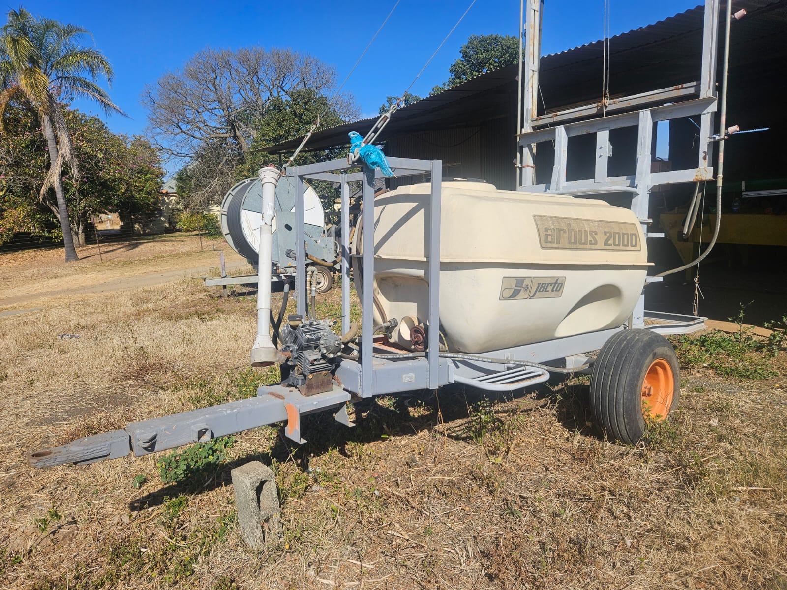 This second hand Jacto Arbus 2000 PTO Mister Sprayer is ready for sale in good working condition. Its robust construction makes it a prime choice for pecan, citrus, nut, and fruit orchards across South Africa.